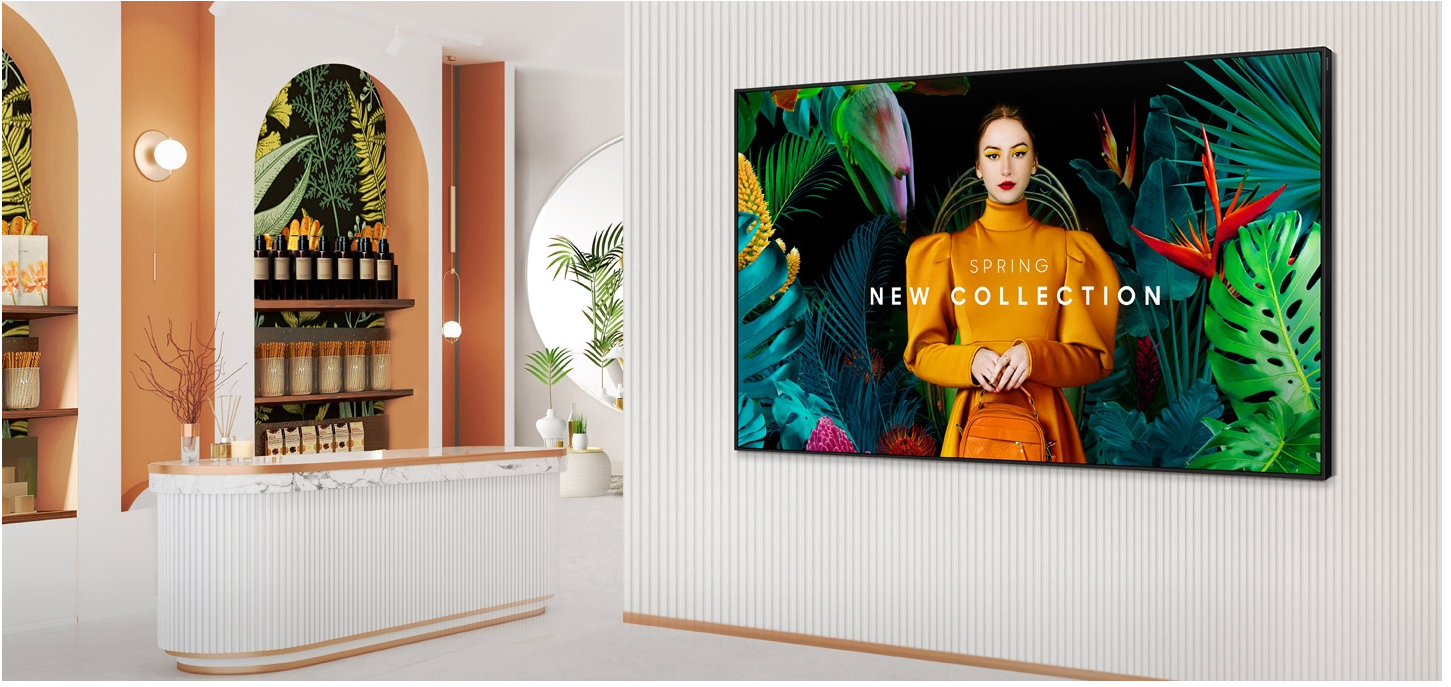 “공간을 빛나게 하는 대형 스크린, 성능과 디자인 둘 다 놓치고 싶지 않다면 삼성 UHD B 시리즈 LH85QBCEBGC-S가 정답입니다.”